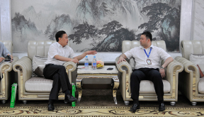 2013年8月7日,上海證券交易所副總經(jīng)理闕波等一行蒞臨冠達(dá)星總部調(diào)研指導(dǎo)工作,圖為上海證券交易所副總經(jīng)理闕波與冠達(dá)星股份有限公司董事長(zhǎng)楊建明先生深入交談。